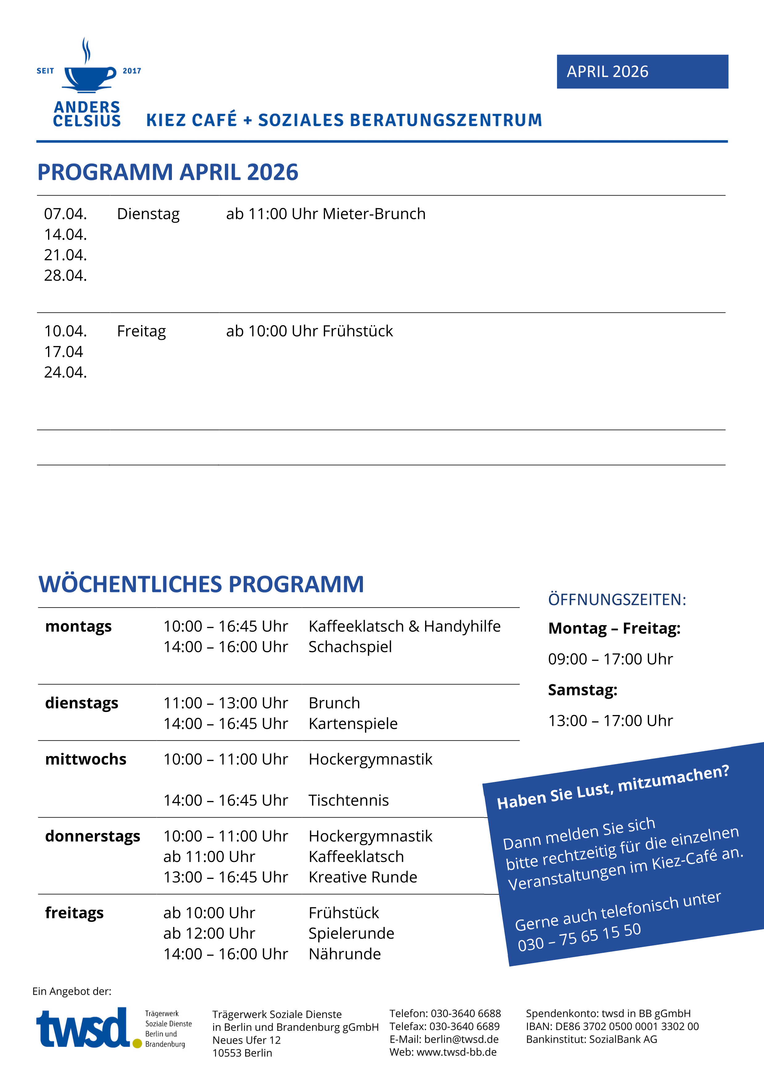 Eröffnung des Sozialen Beratungszentrums und Kiez-Cafés "ANDERS Celsius"