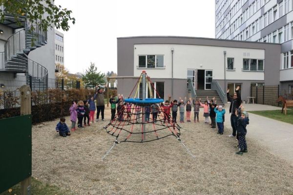 Die großen Kinder hatten sich von Herzen ein Klettergerüst im Garten gewünscht. Hoch hinaus, bis zum Himmel…! Mit phantasiereichen gemalten Bildern der Kinder wurde der sehnliche Wunsch nach einem Klettergerüst in unserer Kita an den Träger (an Frau Schmidt) übermittelt. Und bereits nach kurzer Zeit wurde er erfüllt!