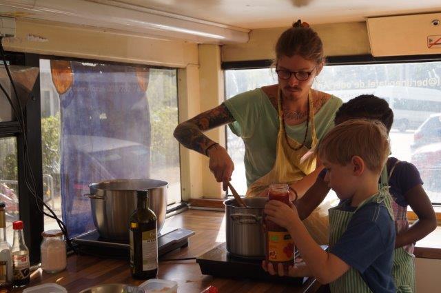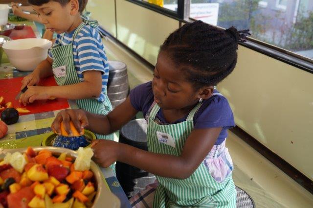 Ein Koch und mehrere Mitarbeiter unterstützen dieses Projekt, um Kindern die Möglichkeit zu geben, in der Küche zu experimentieren, praktische Zubereitungstipps umzusetzen und selbst den Kochlöffel zu schwingen!