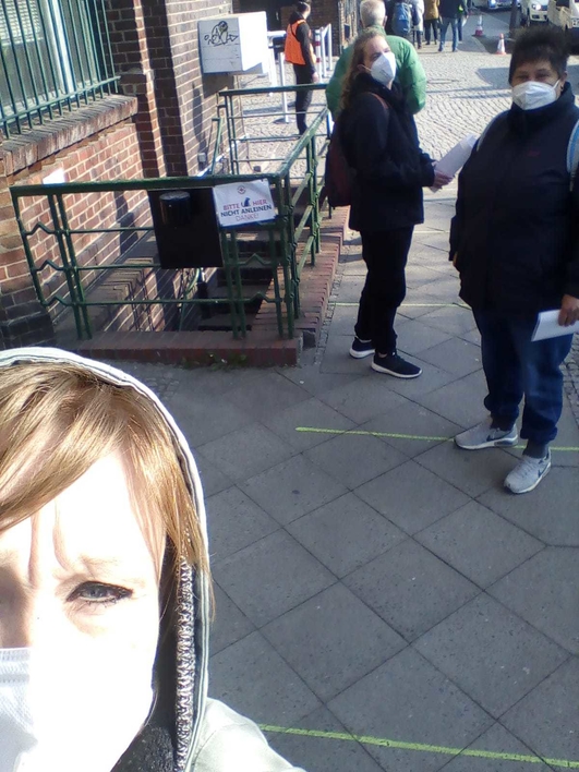 Zu Beginn wurde ich gebeten, mich an einem der beiden Eingänge des Impfzentrums einzuordnen. Nach ein paar Minuten bat mich ein Helfer, meine Impfeinladung und den Personalausweis vorzuzeigen. Anschließend folgte eine kurze Taschenkontrolle. Danach wurde ich nach kurzer Wartezeit zu einer kleinen Kabine geführt, wo ich alle benötigten Dokumente vorlegen musste und Gelegenheit hatte, eventuelle Unklarheiten zu besprechen. Nachdem alles abgeklärt und besprochen wurde, wurde ich nach kurzem Warten von einem Helfer in die Impfkabine begleitet.